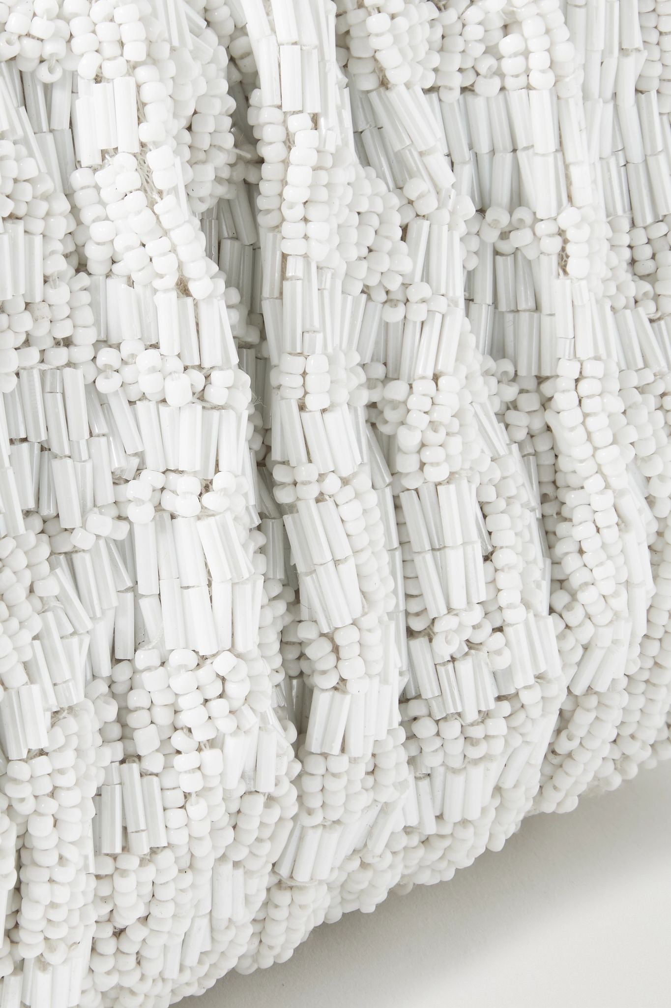 The beaded Bean shoulder bag is a new take on a Staud signature. It is made from gathered leather embellished with an intricate array of beads. Compact and hand-beaded, it features a removable thin strap and a top zip, making it perfectly convertible for day or night.